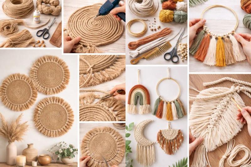 Rope is perfect for boho, coastal, or farmhouse styles. Cotton macramé cord is soft and great for wall hangings. Cotton rope is sturdier for bold designs.